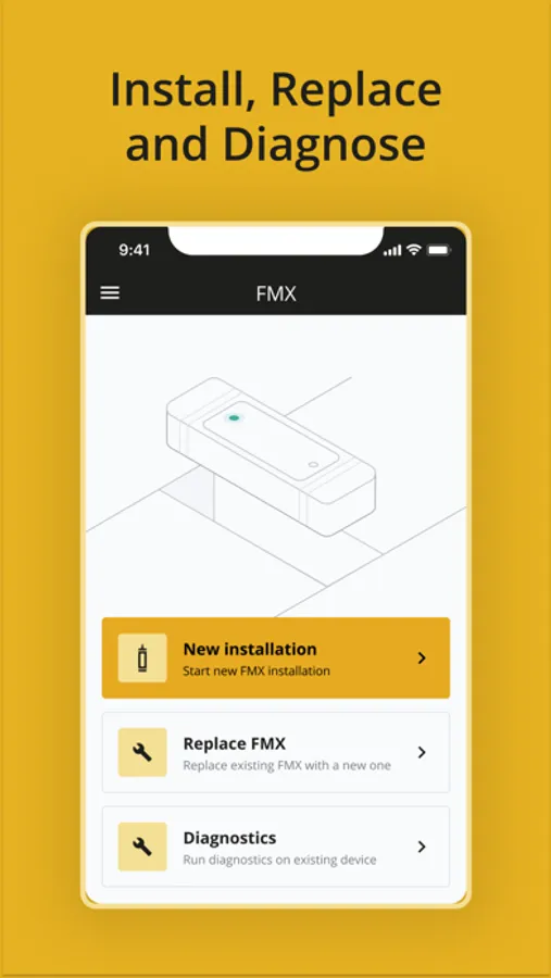 Use the mobile app Wireless View Yale to install the Wireless View device on your equipment following the simple steps within the app: