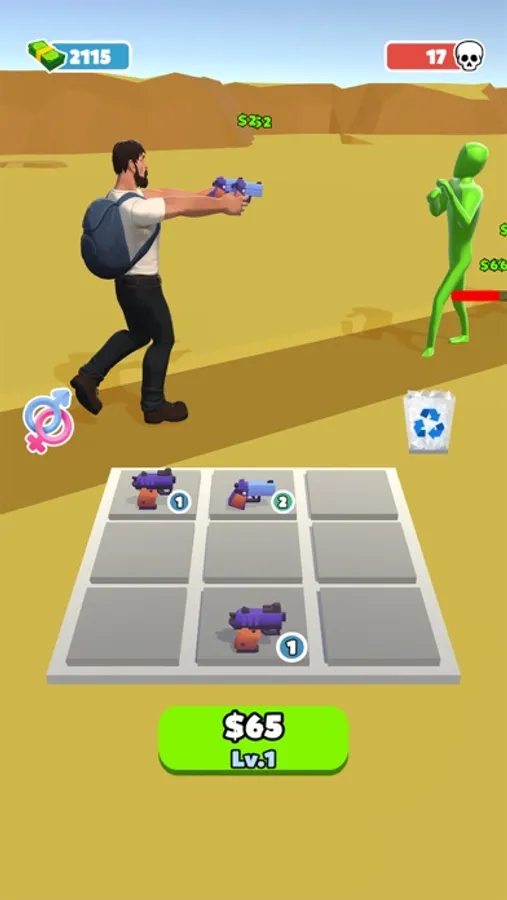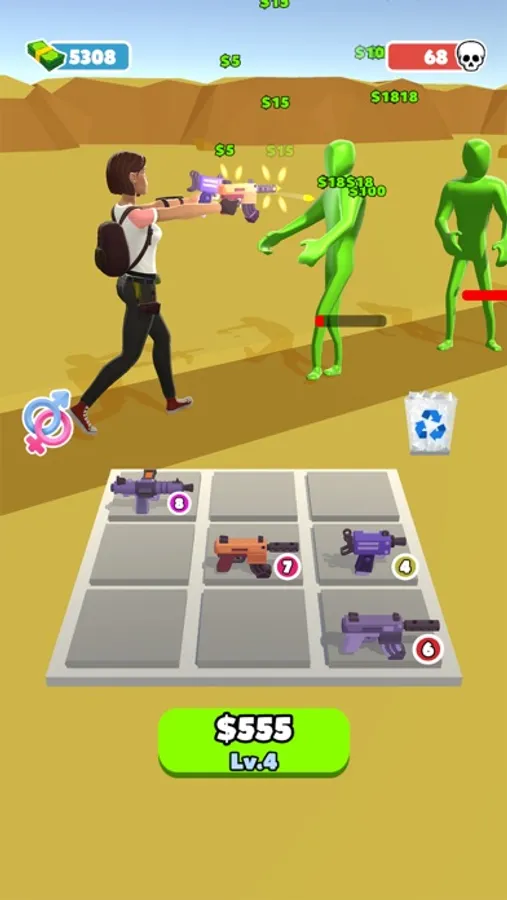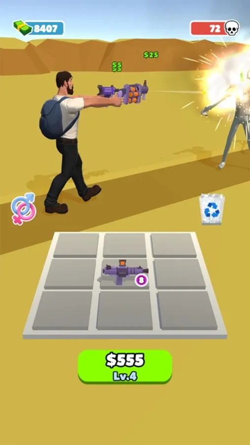 Merge Z is fun survival game. You need to merge guns to make your characters more powerful so they can protect themselves from an onslaught of zombies!