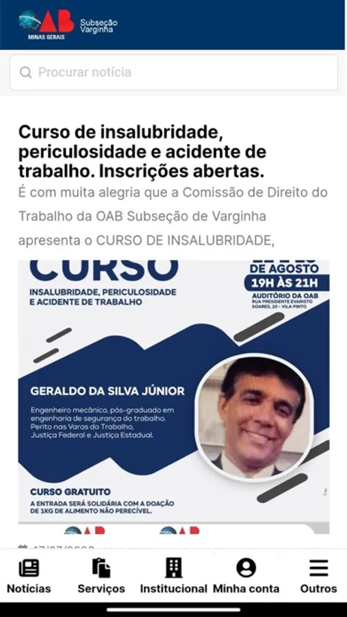 O aplicativo oficial da OAB Varginha é a sua porta de entrada para o universo jurídico. Tenha acesso rápido e fácil às últimas notícias, informações institucionais e uma gama de serviços essenciais. Advogados, estudantes de Direito e entusiastas encontrarão uma experiência completa e atualizada. Baixe agora e esteja sempre conectado com a Ordem dos Advogados do Brasil - Subseção Varginha.