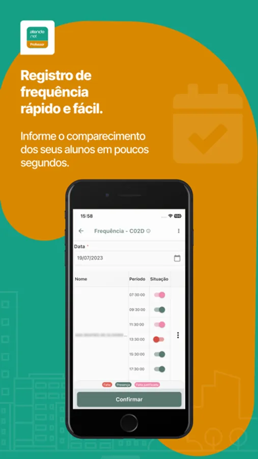 Através do aplicativo Atende.Net Professor®, os docentes podem registrar informações de todas as suas turmas com maior praticidade. O aplicativo permite acessar diversas escolas onde o docente ministra aula, registrar informações da turma, como frequência e ocorrências dos alunos, e manter-se informado sobre as movimentações das matrículas e frequência de cada aluno, entre outros recursos.