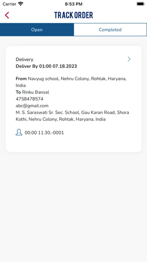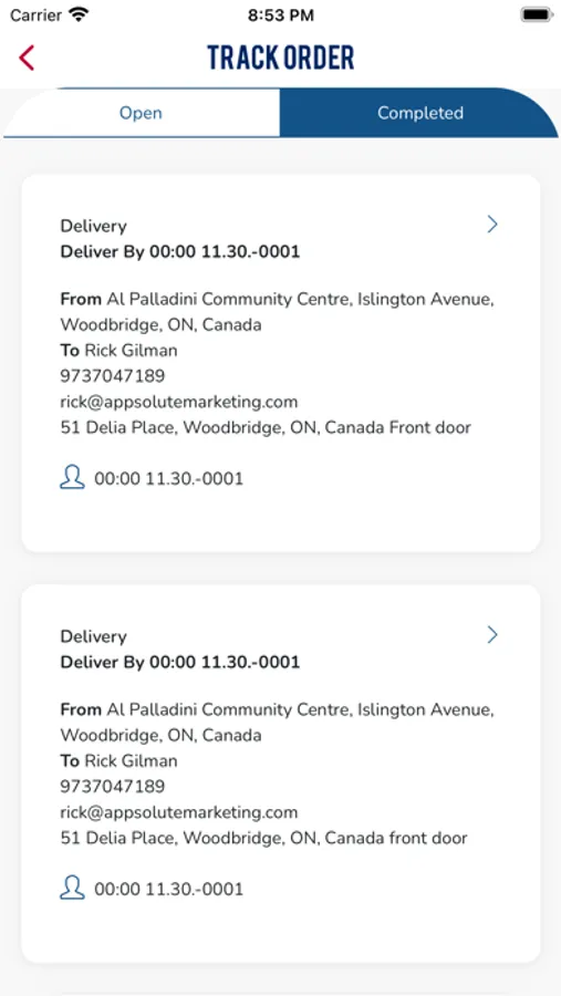 · View completed deliveries with time stamps in the completed tab
