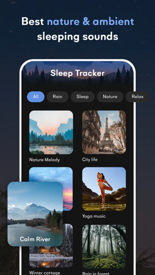Install the Sleep Tracker App to quickly locate the best selection of calming sounds for better sleep. This Sleep Tracker is specially organized to find a variety collection of different sounds which helps you to get better sleep and relaxing your self. Find various collections of different sounds like sleep sound, relaxing sound, rain sound, nature sound, meditation sounds, and many more. Use these superb sounds and make your sleep better.