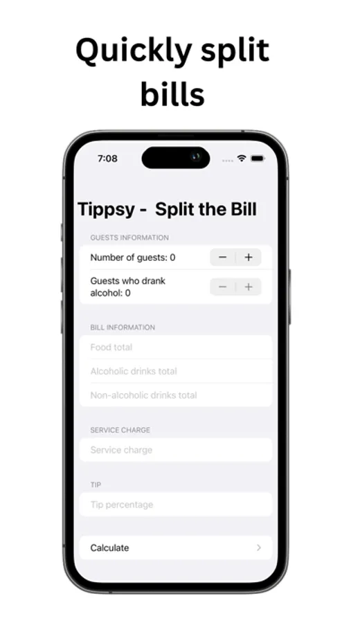 Make dining out with friends easy with TippsyBills - the most intuitive and simple-to-use restaurant bill splitter.