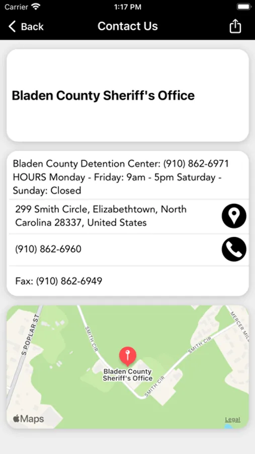 The Bladen County Sheriff’s Office mobile application is an interactive app developed to help improve communication with area residents. The Bladen County NC Sheriff’s app allows residents to connect with the Bladen County Sheriff’s Office by reporting crimes, submitting tips, and other interactive features, as well as provides the community the latest public safety news and information. The app is another public outreach effort developed by the Bladen County NC Sheriff’s Office to improve communication with county residents and visitors. This app is not intended to be used to report emergency situations. Please call 911 in an emergency.