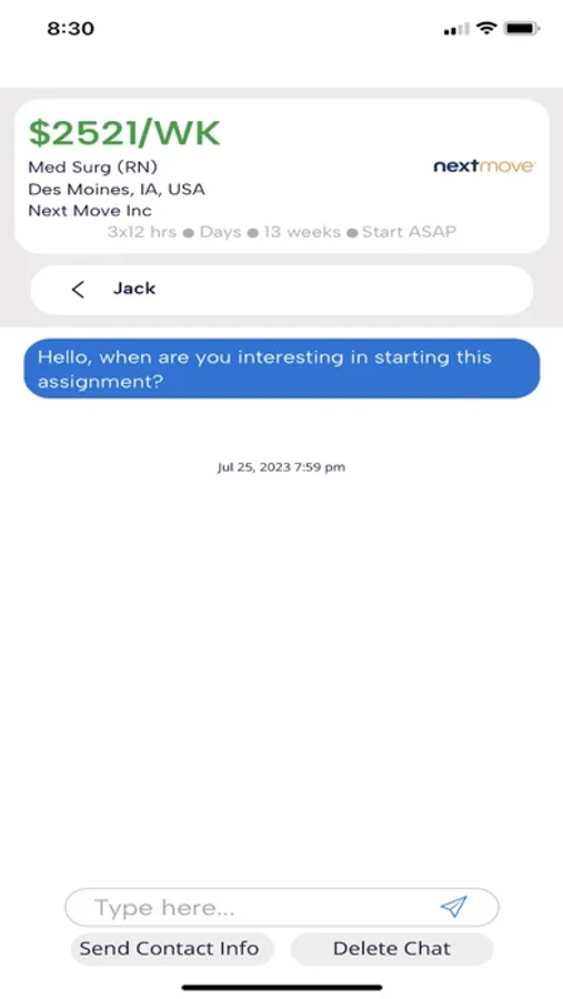 Chat with Recruiters: Connect directly with experienced recruiters through our secure in-app messaging system. Engage in real-time conversations and discuss contract details without the need to share your telephone or email address until you're ready.