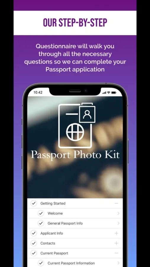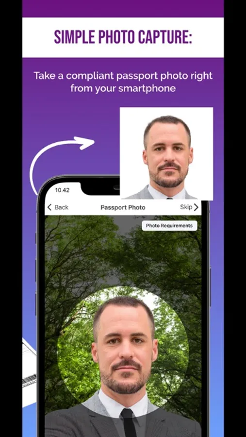 No need to worry about finding a photo booth! Passport Photo Kit lets you take a compliant passport photo right from your smartphone. Our advanced photo verification technology ensures that your photo meets all the US government's strict requirements.