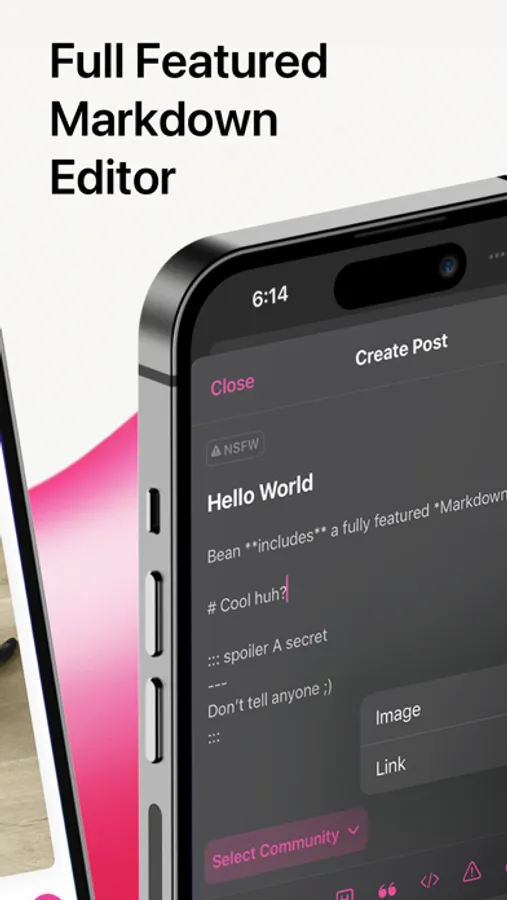 When creating new posts or comments, Bean offers you a comprehensive markdown editor to make crafting the perfect hot take easy.