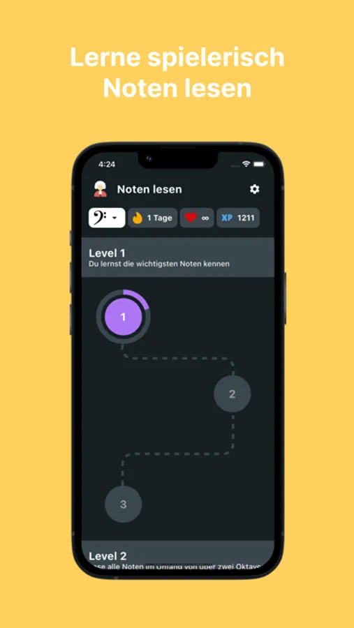 - Spielbasiertes Lernen: Lerne spielerisch! Unsere App bietet unterhaltsame Übungen und Spiele, die Deine Fähigkeiten im Notenlesen verbessern.