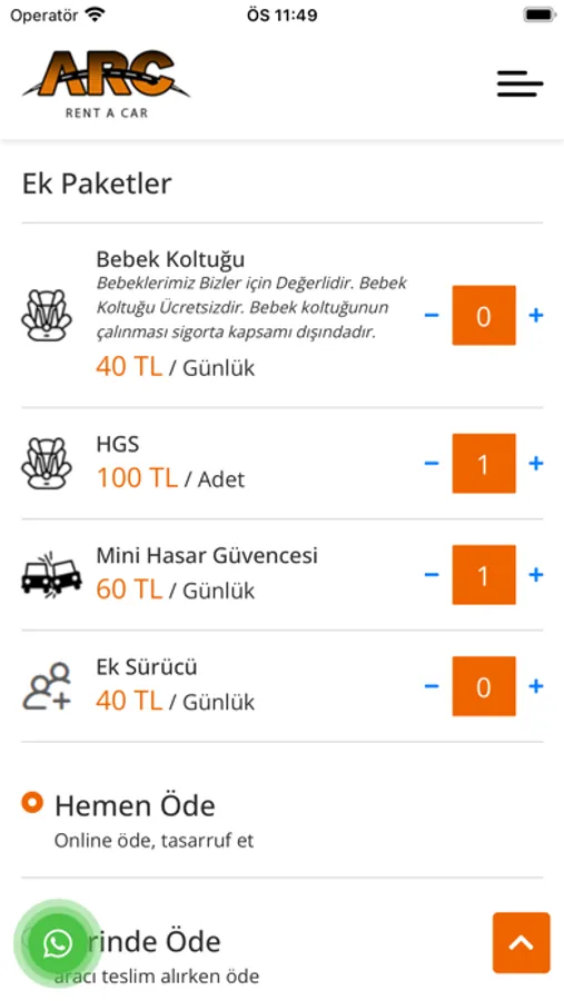 Uygulamamız üzerinden belirtlen bölgelerden arabanızı kiralayabilir ve teslim alabilirsiniz. İster hemen ödeyin ister yerinizde ödeyin.