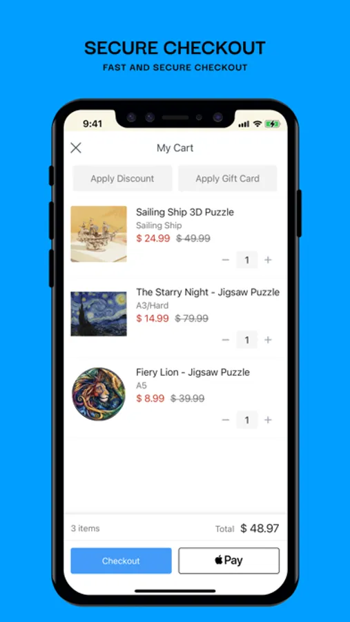 Tap, swipe, shop and secure your new products in an instant with our super easy checkout.