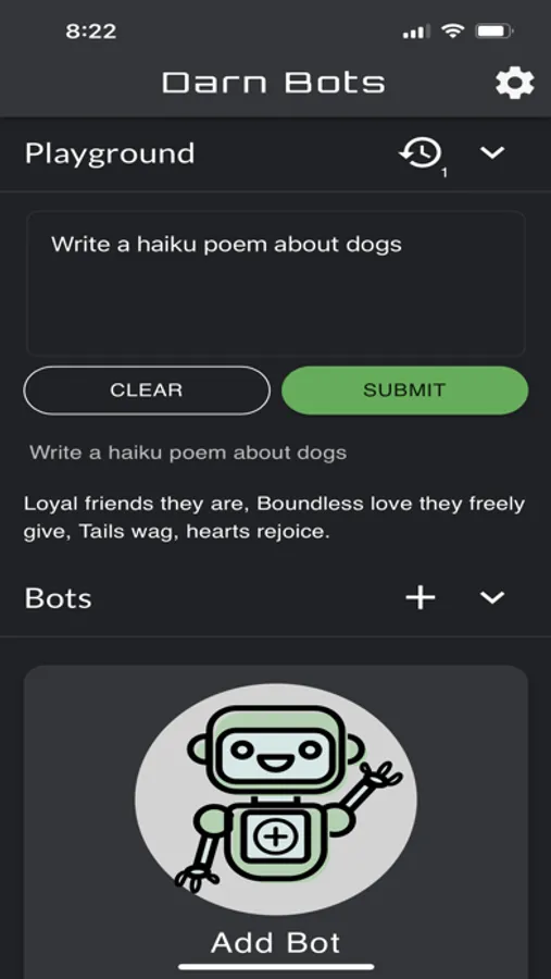 Start with a template or write your own prompts from scratch, with Darn Bots you're always in control.