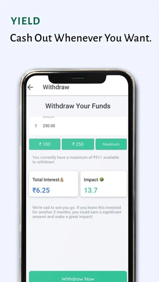 Yield allows you to invest in GreenTech projects and earn interest by doing so.