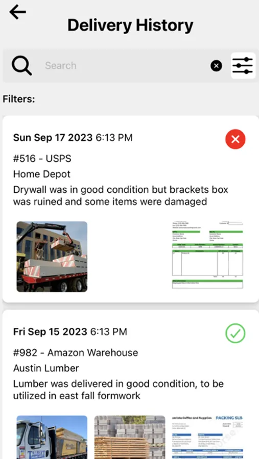 Find past deliveries in a snap. Filter, search, and sort your records, making it simple to retrieve any ticket or image in seconds.
