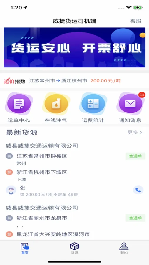 威捷货运是一款针对物流行业定制开发的一款集专业货运、货车ETC、货车加油、汽车维修等综合物流服务软件,威捷定义物流,数字改变生活。