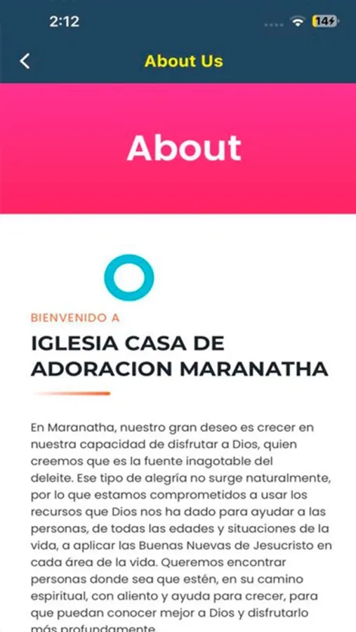 Somos una Institución sin fines de lucro, Iglesia Cristiana Casa de Adoración Maranatha inc, en esta app podrás conocer mas de nosotros y tendrás acceso a contenido multimedia, predicaciones de nuestros Pastores y Ministerios Asociados. De Igual Forma te podrás poner en contacto con nosotros con mostivo de oración o alguna otra petición o información relacionando con nosotros, Dios te Bendiga...