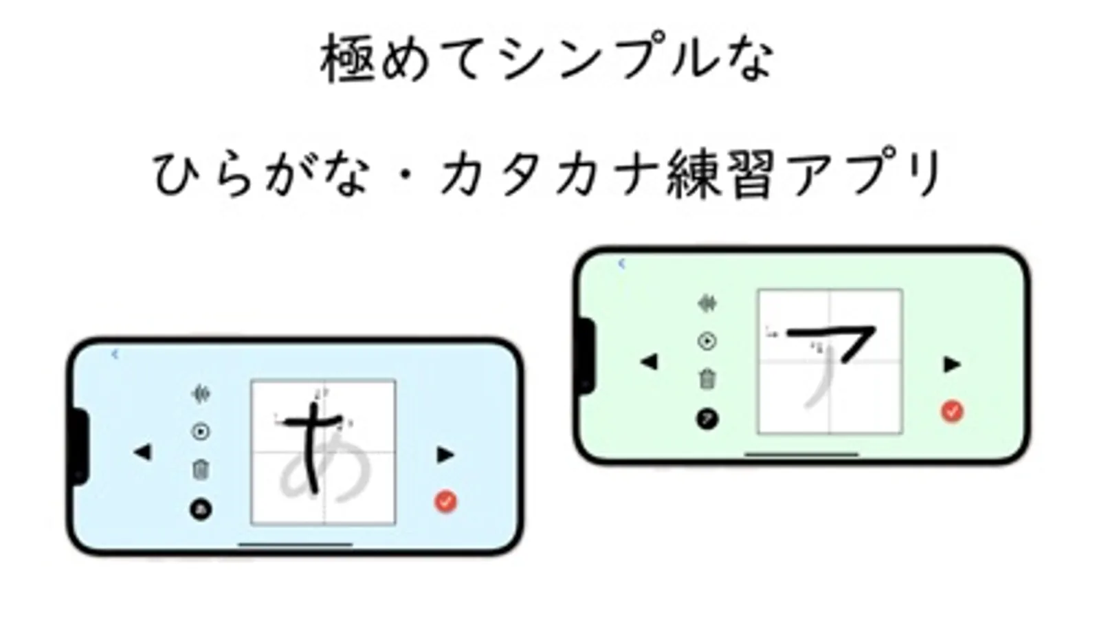 ・ひらがな、カタカナをなぞって練習が可能