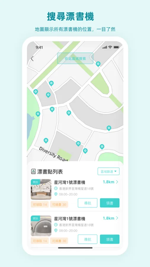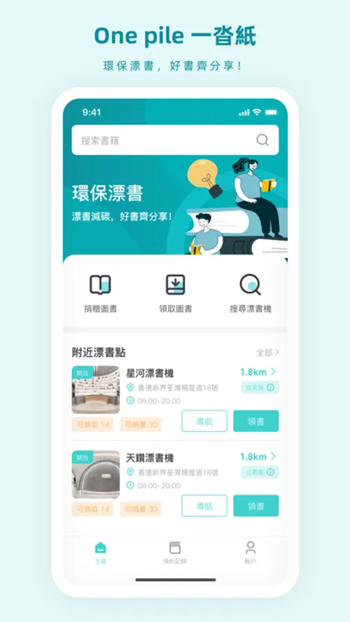 -註冊成為用戶,用戶可在地圖查看附近的漂書點信息並進行線上預約,預約完成後到指定的漂書機進行捐書、取書。