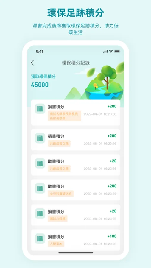 -漂書完成後將獲取環保足跡積分,助力低碳生活