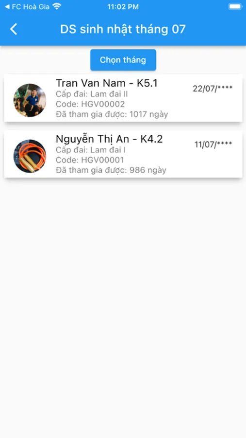 + Danh sách thành viên có sinh nhật theo tháng