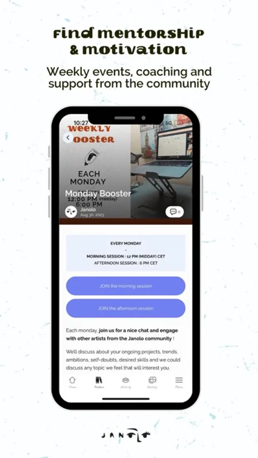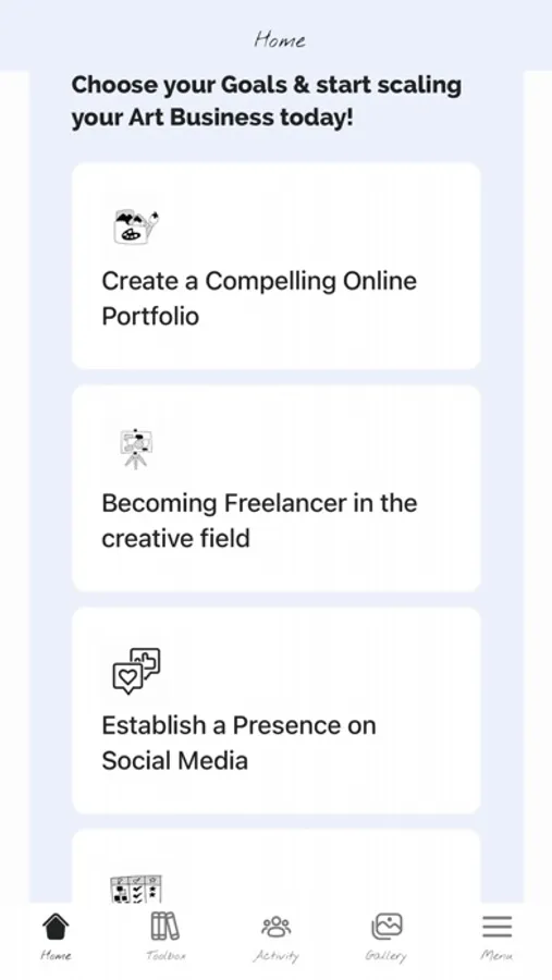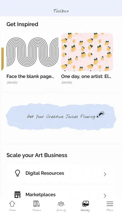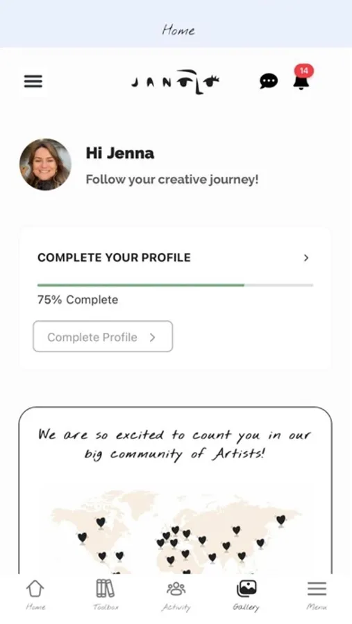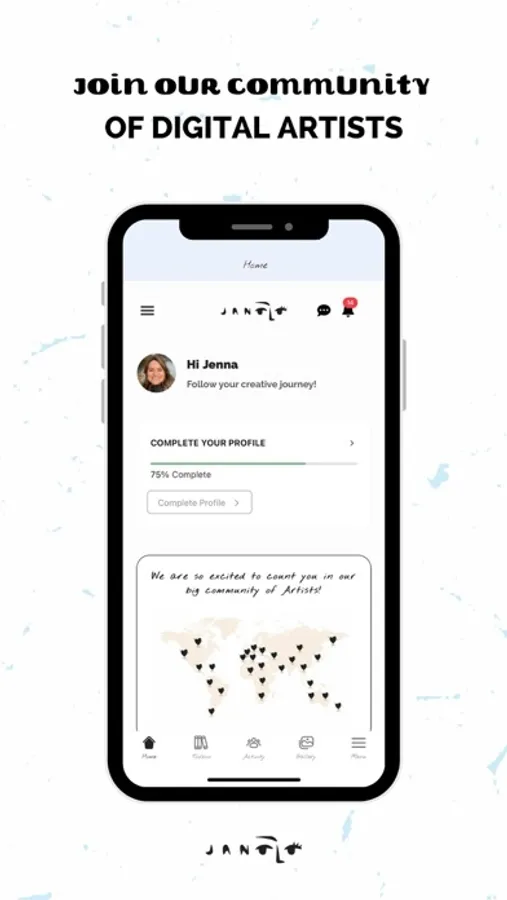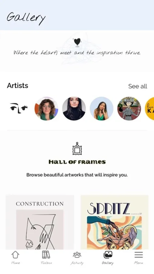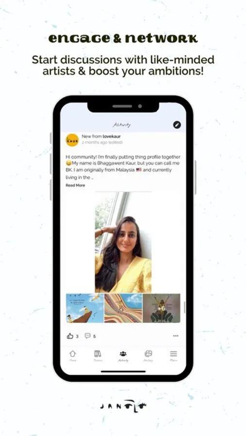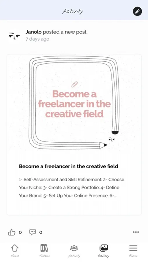 Activity feed : A safe place in which you can engage with like-minded artists, share your ideas, doubts and ask for advice!