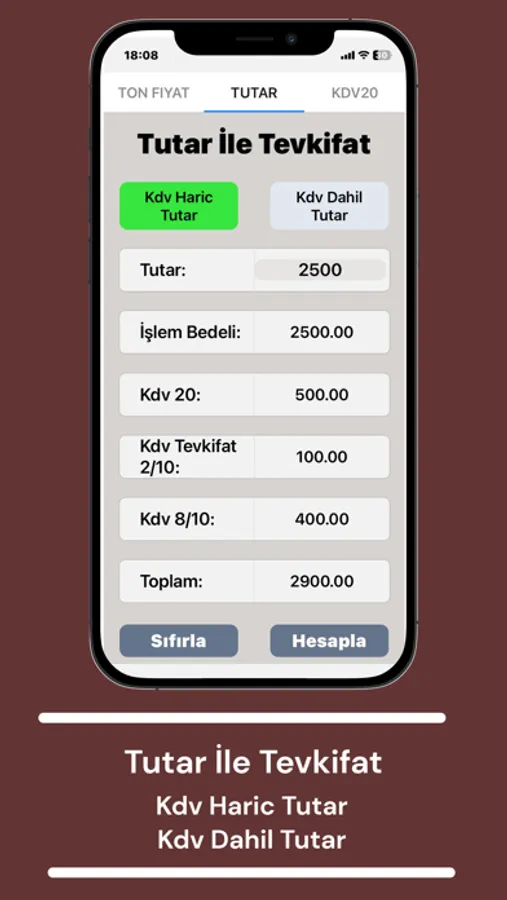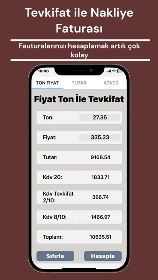 Uygulamamızın kullanımı oldukça basittir. Tonaj (ton cinsinden girilir) ondalık ayıraç olarak nokta kullanılmaktadır. Fiyat girilir ve hesapla butonuna tıklanır ve sonuçlar çıkar.