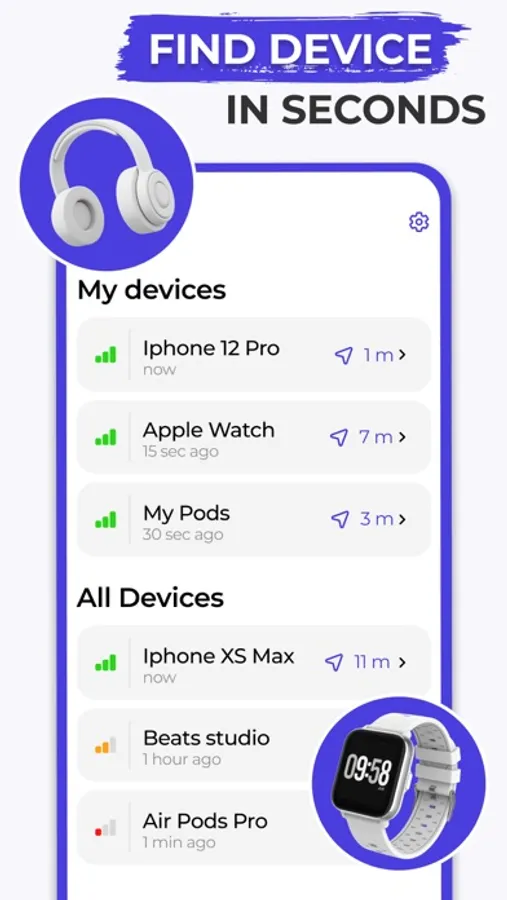 Introducing Device Finder, the ultimate solution to quickly locate your lost Bluetooth devices in a matter of seconds. Whether it's your Wireless Headphones, Watch, or any other Bluetooth device, our app makes it effortless to find them with just a few taps. Say goodbye to the frustration of losing your gadgets!