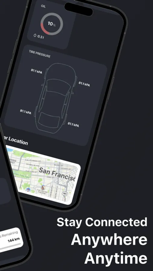 Check out our app that allows you to keep track of all the necessary information about your car in one click! You can ensure that your car is safe before traveling by checking the remaining fuel level/battery level, engine oil life, tire pressure, and more. With our app, you can get crucial notifications when something doesn't meet the safety requirements, allowing you to stay safe on the road.
