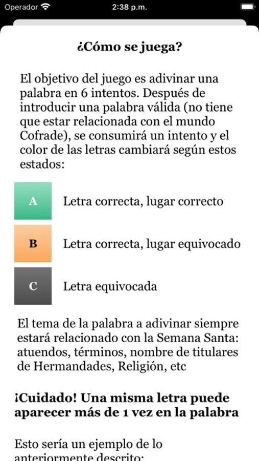 Con Palabras Cofrades podrás demostrar todo lo que sabes de la Semana más grande del mundo, encontrarás palabras de 4, 5, 6 y 7 letras divididas por dificultades. ¿Serás capaz de acertarla?