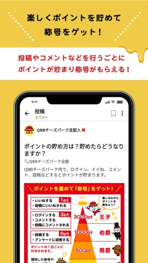 QBBチーズパークは、チーズが大好きな皆さんの「ココロとカラダのヘルシー」を楽しくサポートする、コミュニティアプリです。