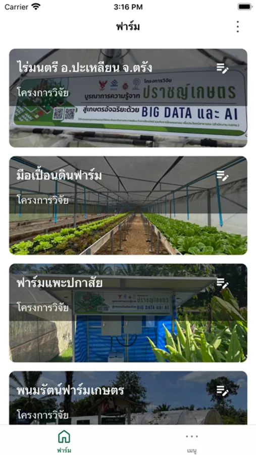 Walailak Farm Teeh แอปพลิเคชันสำหรับการเกษตร เพื่อศึกษาการบริหารจัดการฟาร์ม โดยสามารถตรวจสอบและควบคุมการเพาะปลูกได้แบบเรียลไทม์ การเก็บข้อมูลการเพาะปลูก การเจริญเติบโต การทำงานของอุปกรณ์ต่างๆ เพื่อนำไปวิเคราะห์ และปรับปรุงการเพาะปลูกให้มีประสิทธภาพ