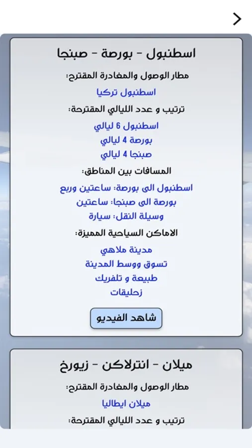 - خطط سفر جاهزة تربط عددا من المناطق يمكن التنقل بينها عن طريق السيارة او القطار
