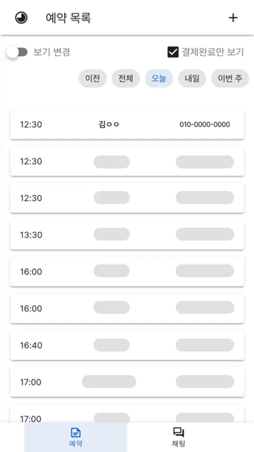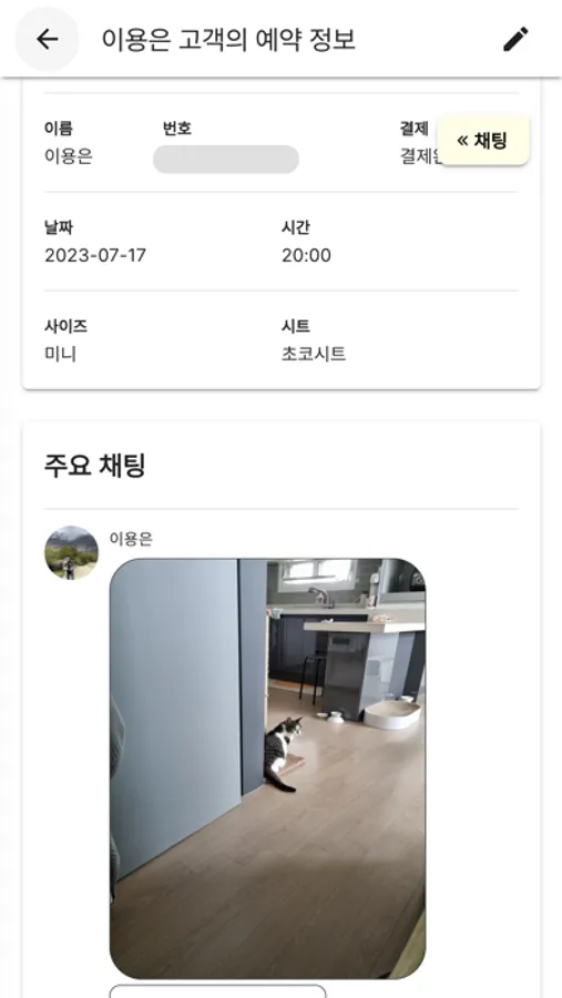 - 날짜와 시간별로 정리된 예약정보와 채팅을 한번에 확인할 수 있어요