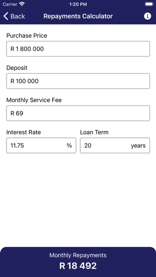 The Repayments Calculator is used to calculate how much you will have to pay monthly when purchasing a home at a specific price, like the Affordability calculator you can play with various factors to see how it will affect your monthly repayments.