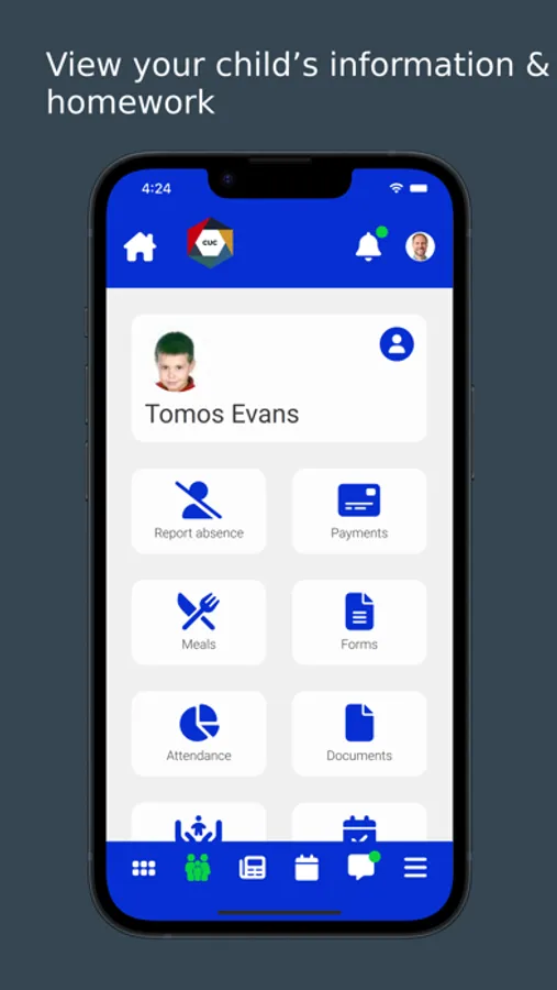 - View the School calendar and noticeboard, with information relevant to you and your child.