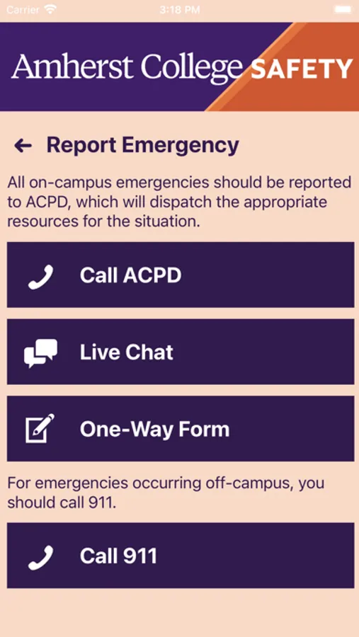 Amherst College Safety is the official safety app of Amherst College. It is the only app that integrates with Amherst College's safety and security systems. ACPD has worked to develop a unique app that provides students, faculty and staff with added safety on the Amherst College campus. The app will send you important safety alerts and provide instant access to campus safety resources.