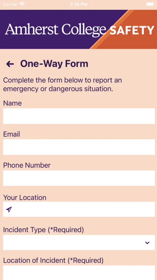 - Panic Button: Send your location to Amherst College security in real-time in case of a crisis