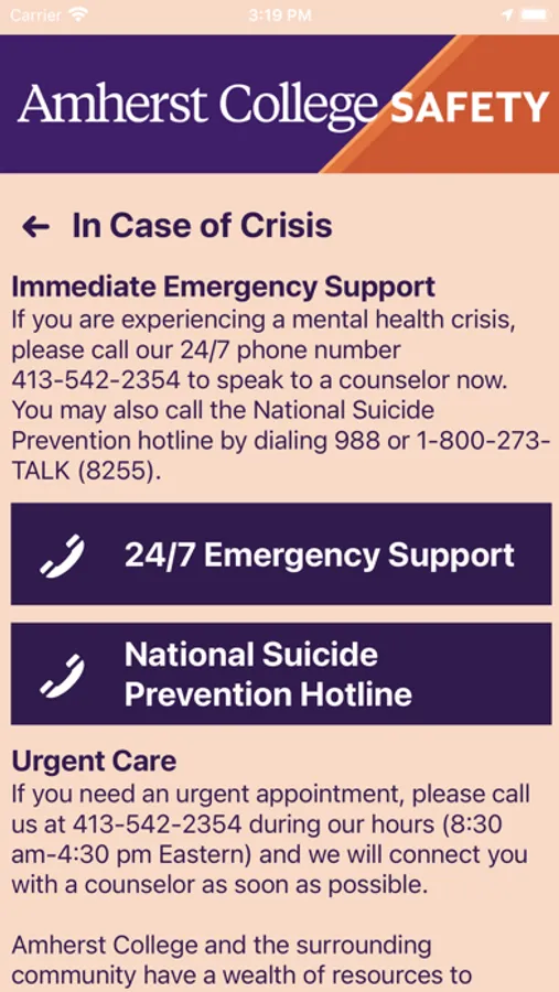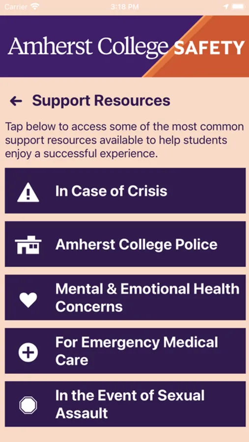 - Support Resources: Access support resources in one convenient app to enjoy a successful experience at Amherst College.
