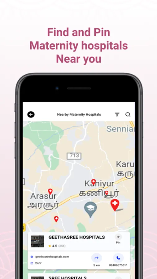 Nearby Hospital: Search for the nearby hospitals in your area and get directions to them.