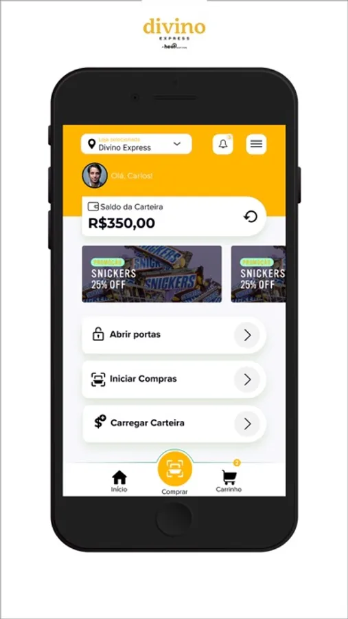 Com o aplicativo Divino Express vai ser muito mais fácil fazer compras. Com ele você irá ter acesso às nossas lojas simplesmente scaneando o QR Code na porta de entrada através do seu celular. Para comprar, basta apontar a câmera do seu celular para o código de barras do produto desejado, confirmar o seu carrinho virtual e fazer o pagamento pelo próprio aplicativo. Seu tempo é precioso para nós.