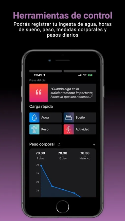 Además, te brindaré planes de nutrición personalizados y deliciosas recetas diseñadas para ayudarte a alcanzar tus objetivos de peso y rendimiento. No importa si querés perder peso, ganar masa muscular o simplemente mejorar tu salud, juntos encontraremos el plan perfecto para vos. Además, podrás llevar un registro de tu peso corporal, medidas y pasos, para que puedas hacer un seguimiento completo de tu progreso y tomar decisiones informadas sobre tu bienestar.