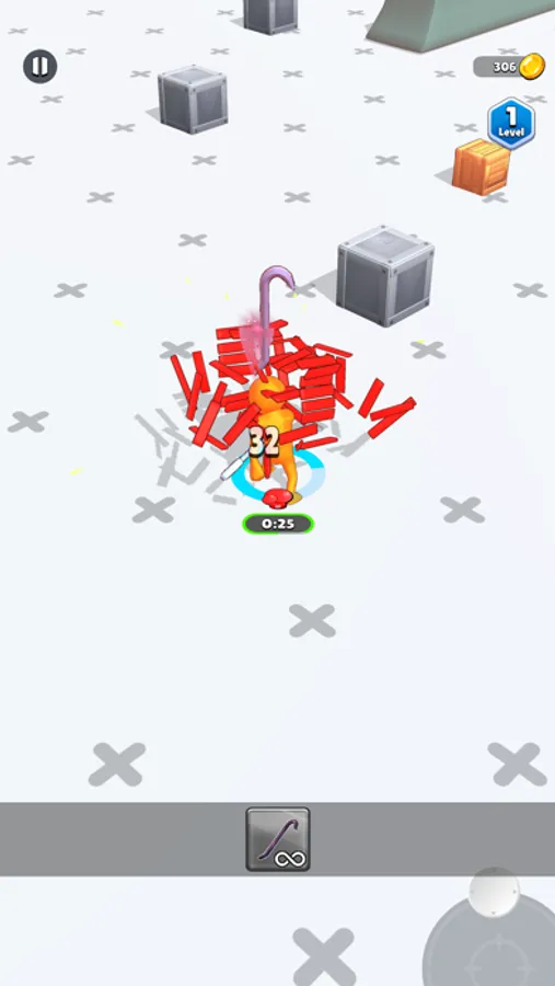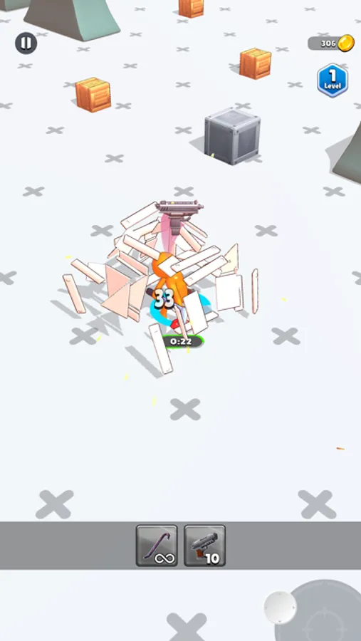 Break the boxes, get a weapon, defeat the enemy, and win the game!