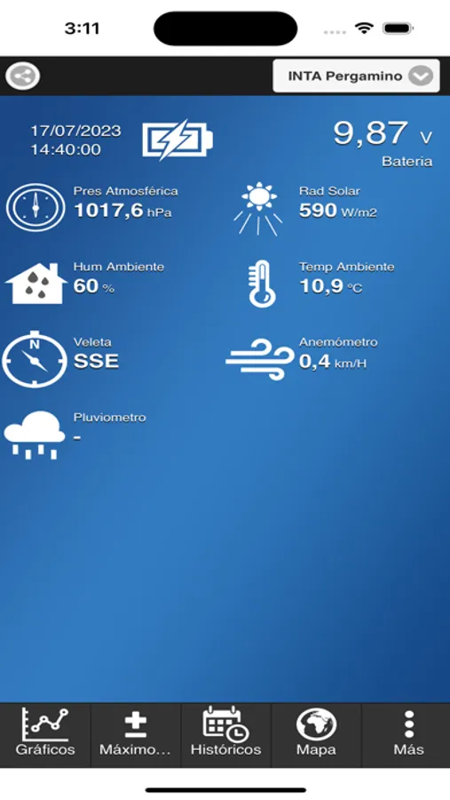 Tecmes Mobile le brinda lecturas precisas de su estación Meteortec o Pegasus sobre datos de temperatura, humedad, dirección de viento, precipitaciones, gráficos comparativos, máximas y mínimas, datos históricos y mucho más.