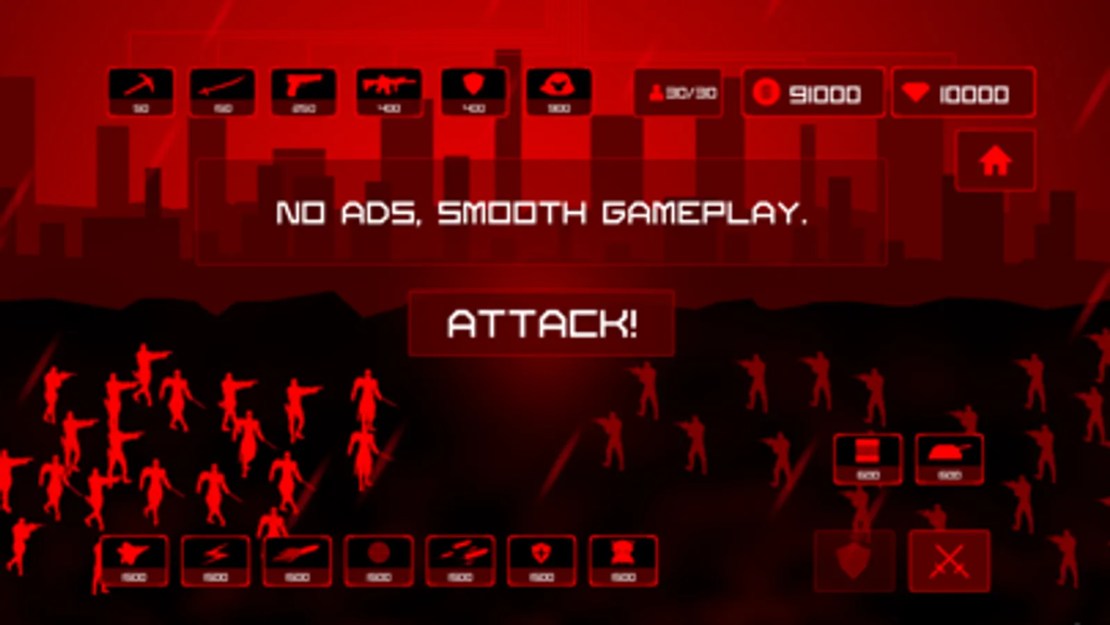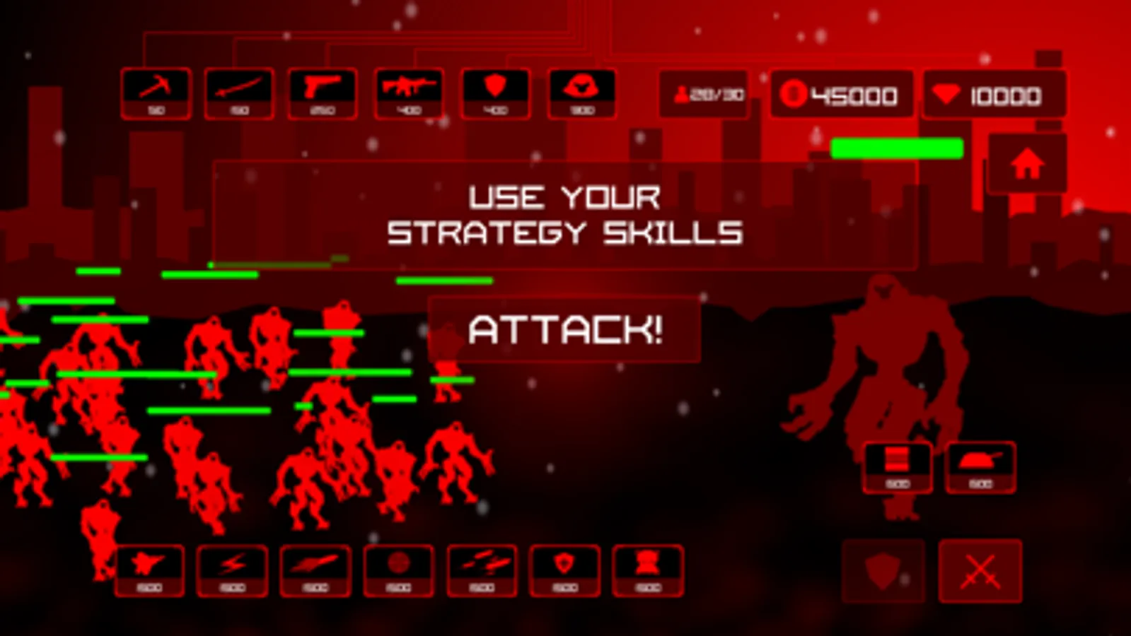 • Strengthen your army to be stronger against the enemy. (Upgrade health, damage, speed, range, damage rate)