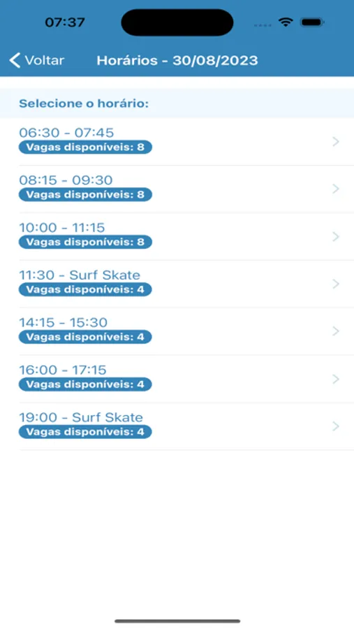 - Visualizar todos os horários de aulas e disponibilidade de vagas;