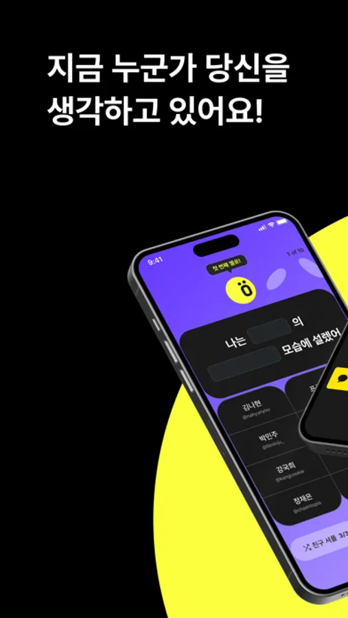 - 보낸 YELLO는 익명으로 표시되지만, YELLO를 받은 유저가 포인트를 사용해서 질문의 키워드와 보낸 사람의 전체 이름 중 랜덤 1개 초성을 확인할 수 있어요