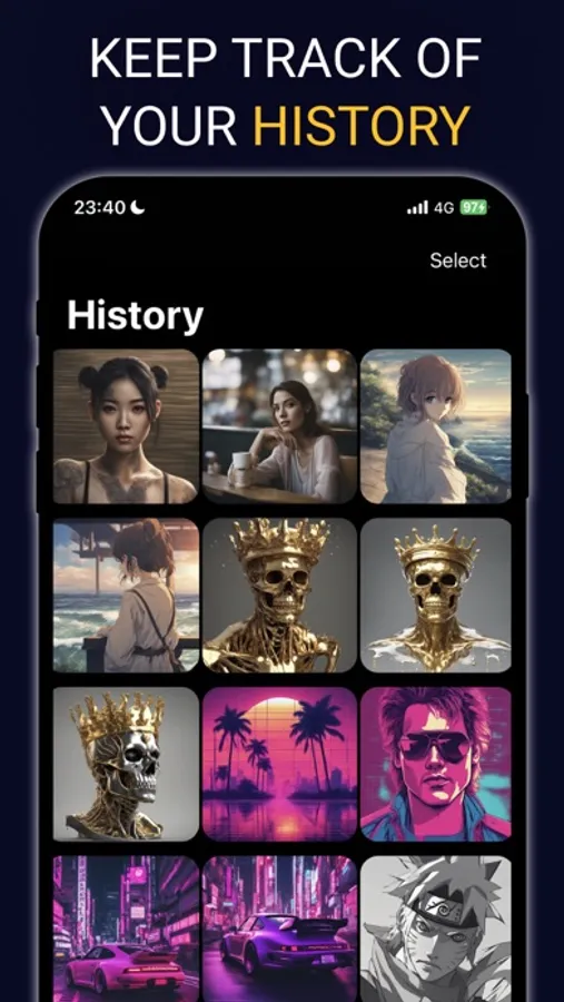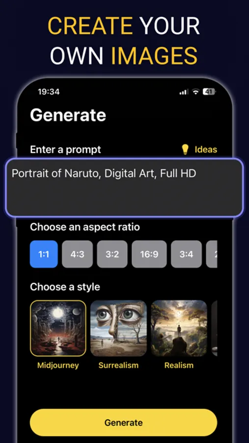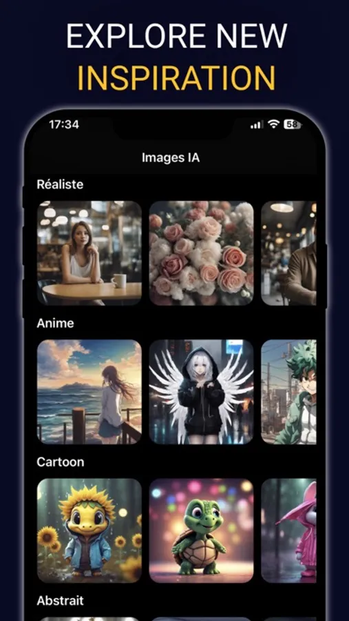 - Inspiration Gallery: Stuck in a creative rut? Our Inspiration Screen offers a library of pre-existing prompts and high-quality images to stimulate your imagination and inspire your next masterpiece.