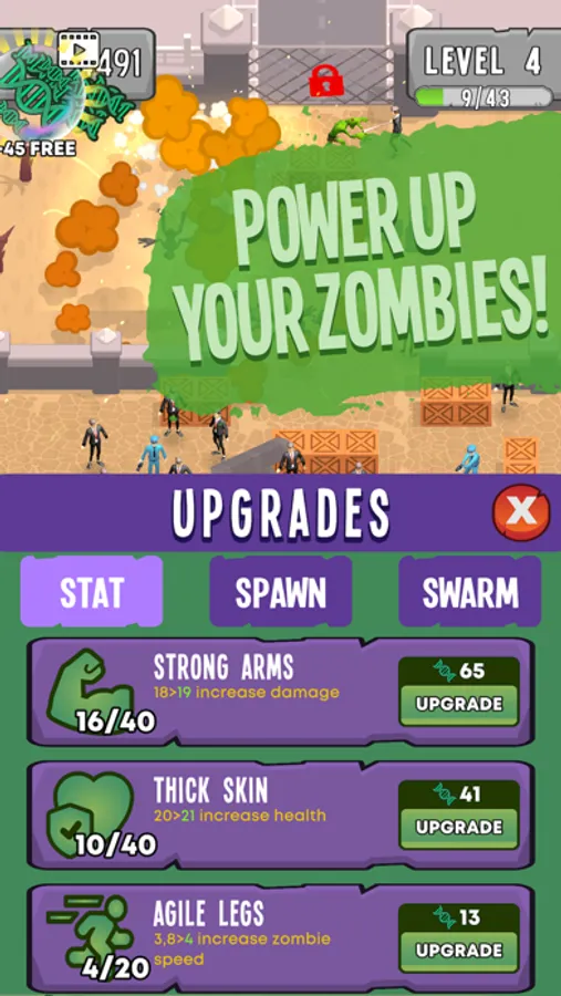 • Earn DNA points and use them to upgrade your zombie army on many different categories. Get powerful enough to be unstoppable!