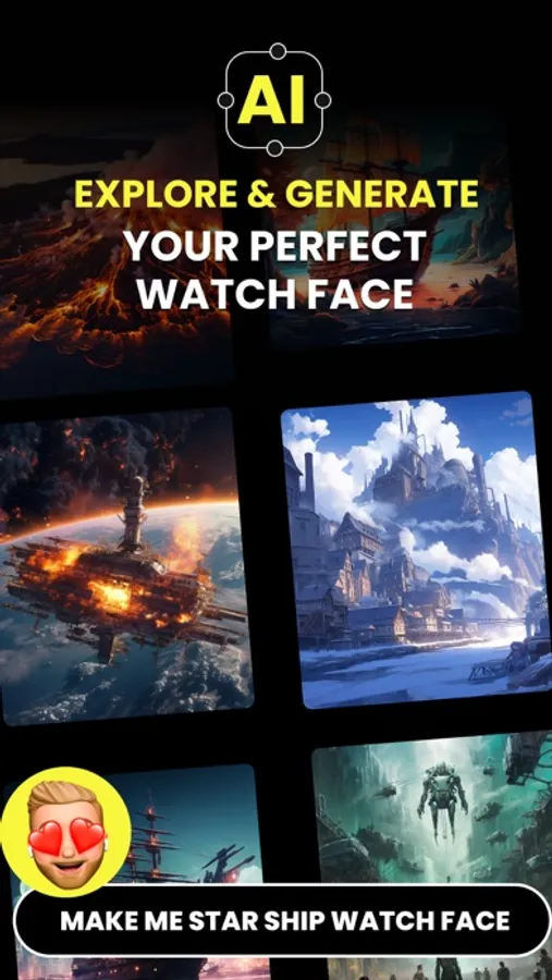 Feeling less imaginative? No worries. Watch Styler also offers an array of stunning stock photos and visuals that can be effortlessly transformed into captivating watch faces with a few taps. Whether it's awe-inspiring landscapes or adorable pets, our expansive image library has something to captivate every user. And for those seeking to venture further, our AI-powered creation option empowers you to design your very own watch face, seamlessly merging technology with creativity.