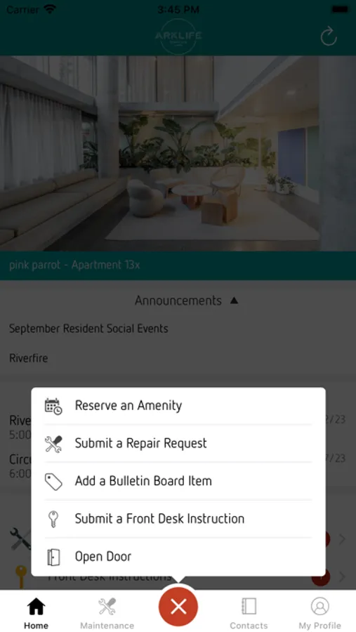 Submit maintenance requests, access important documents, view announcements, reserve facilities and create your own community profile.