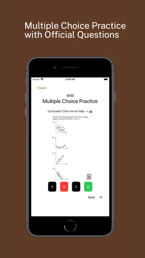 This app includes various features, such as an AI Chatbot powered by ChatGPT, multiple choice practice problems, a formula guide, and solutions for all SAT Practice Tests!